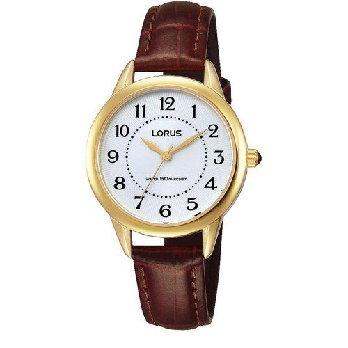 Lorus RG252JX9 horloge , Lorus Goud Dameshorloge Met Bruine Leren Band Voor dames