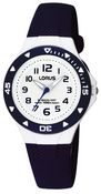 De nieuwe Lorus RRX43CX9 is leuk en duidelijk kinderhorloge met witte kast en blauwe rubberband.