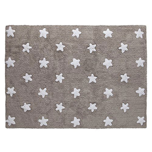 Wasbaar Sterren vloerkleed katoen. Grey Stars White